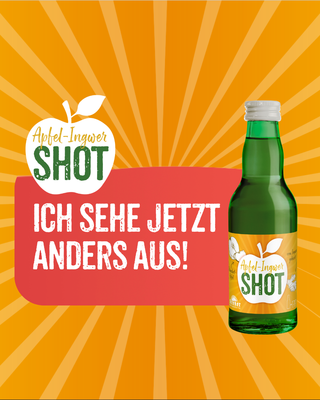 Am 15.11. und 16.11.2025 sind wir in Stuttgart bei der Messe kulinart. Ihr könnt unseren Apfel-Ingwer-Shot verkosten. Besucht unseren Stand, wir freuen uns.