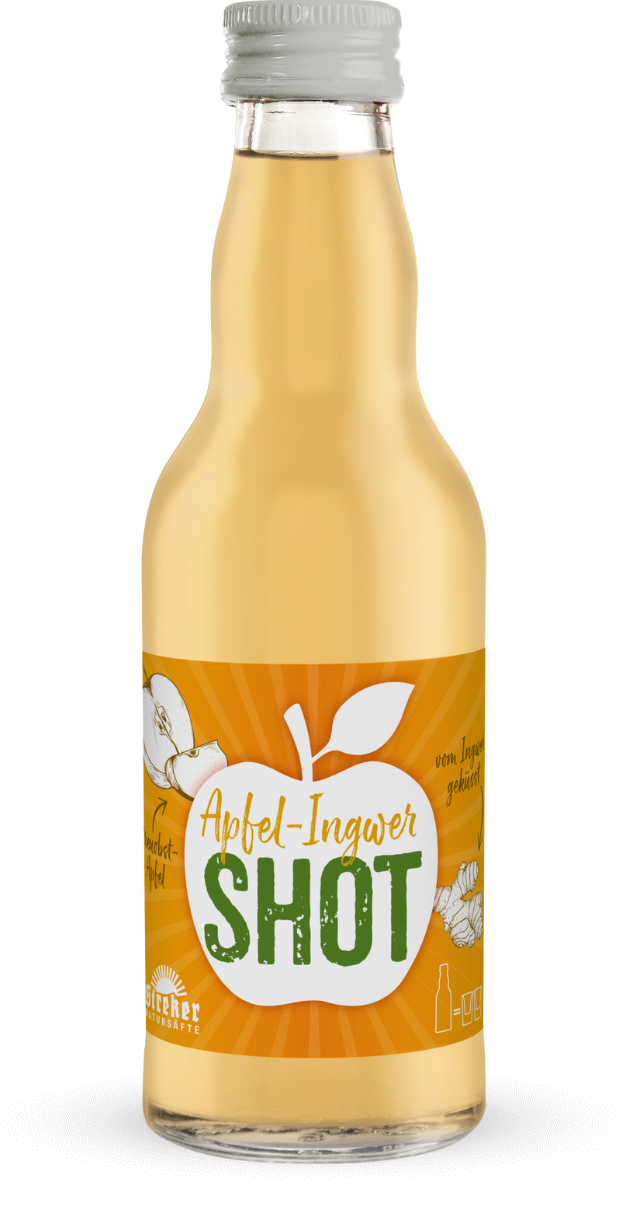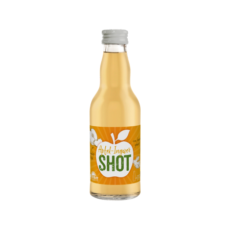 Zutaten: Apfelsaft 70%, Ingwersaft 20%, Zitronensaft 10%, Vitamin C